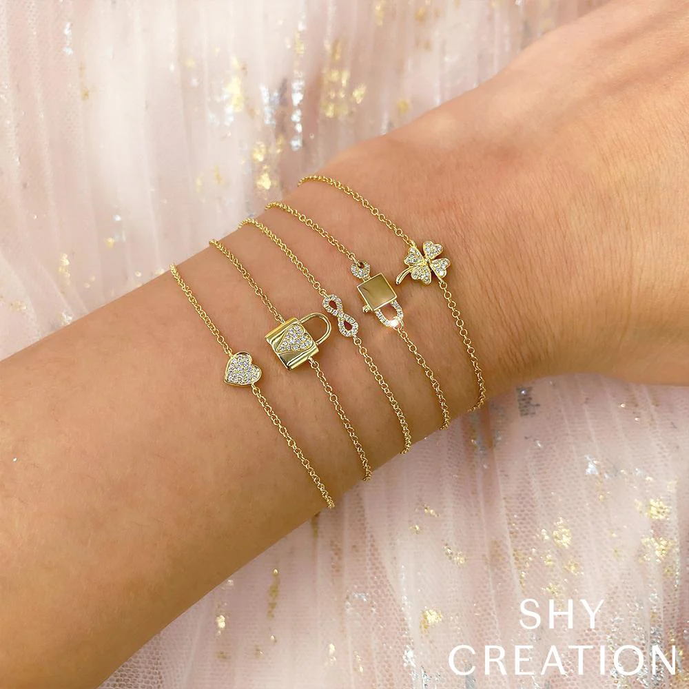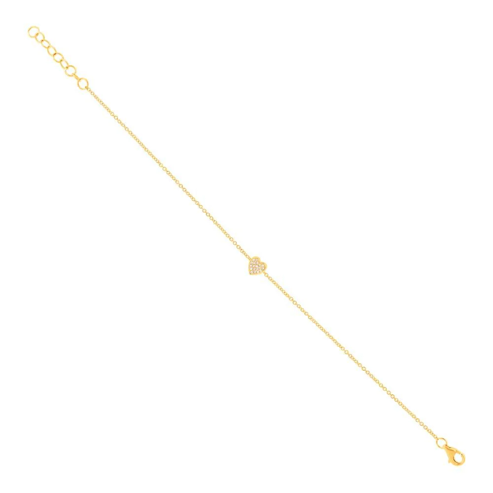 14K Yellow Gold and Diamond Pave Heart Bracelet (.04ct)