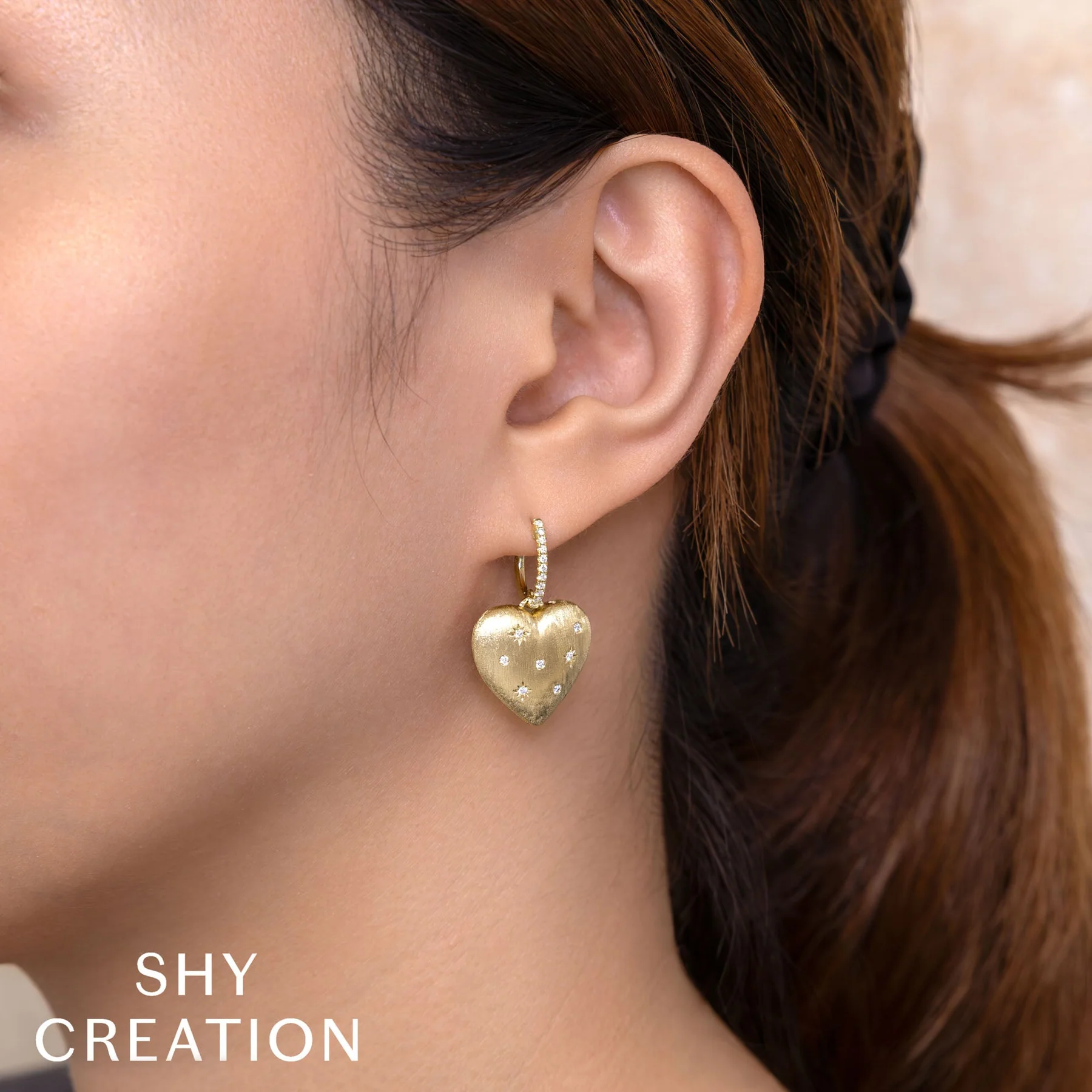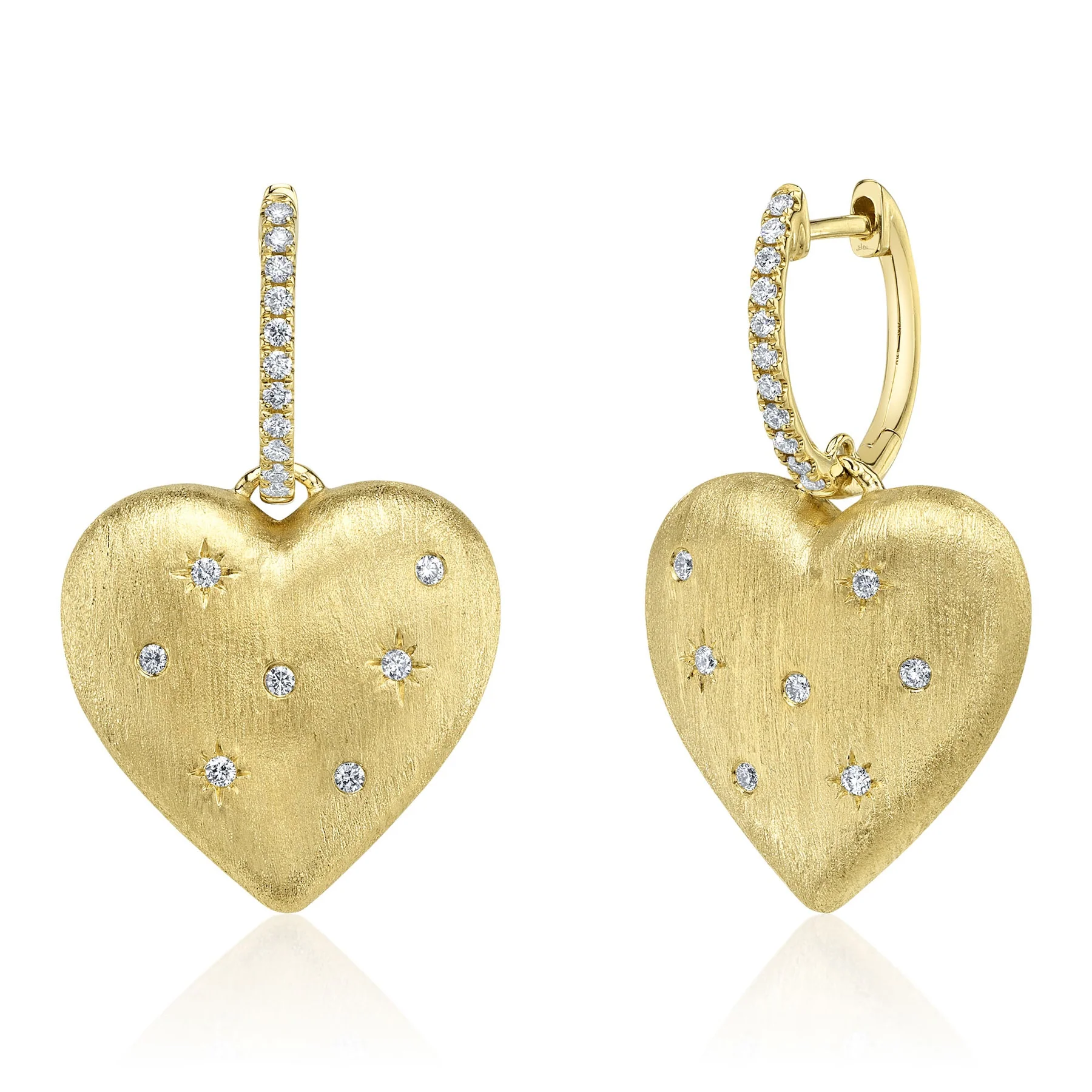 14K Yellow Gold/Diamond Heart Star Matte Earring (.26ct)