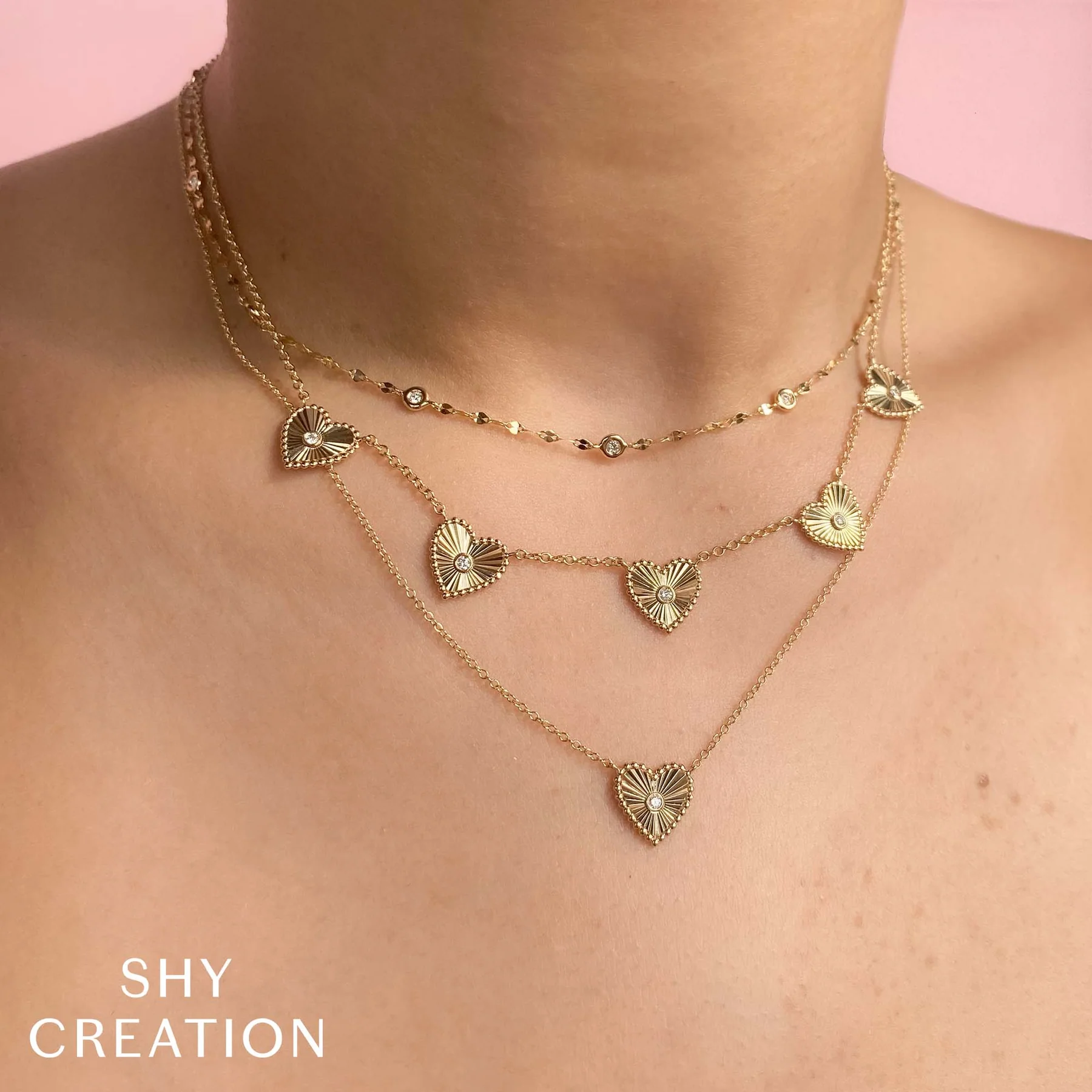 14K YG/Diamond Bezel Ribbed Heart Necklace (.02ct)