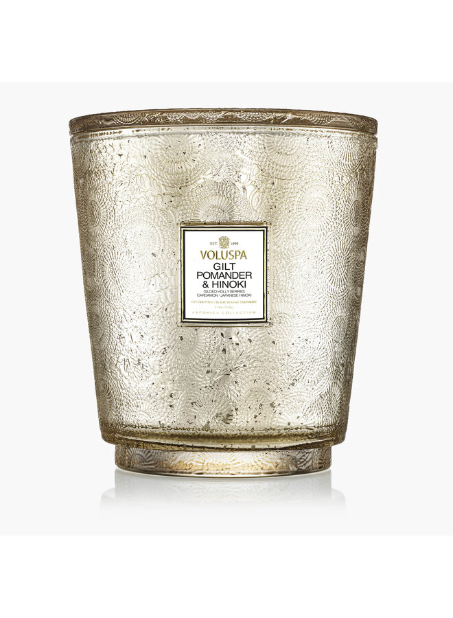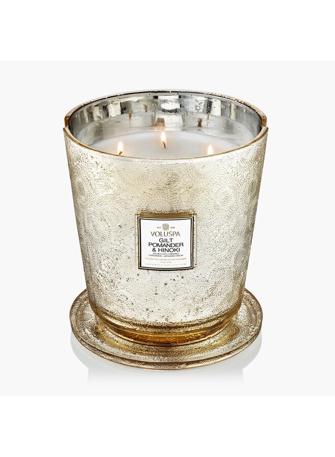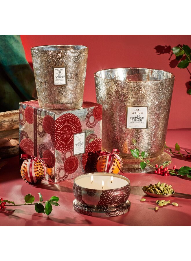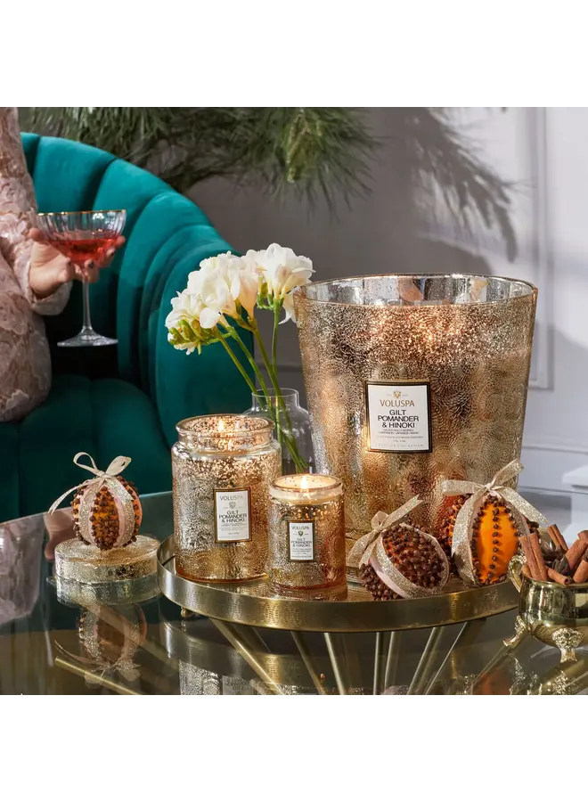 5 Wick Hearth Candle- Gilt Pomander & Hinoki