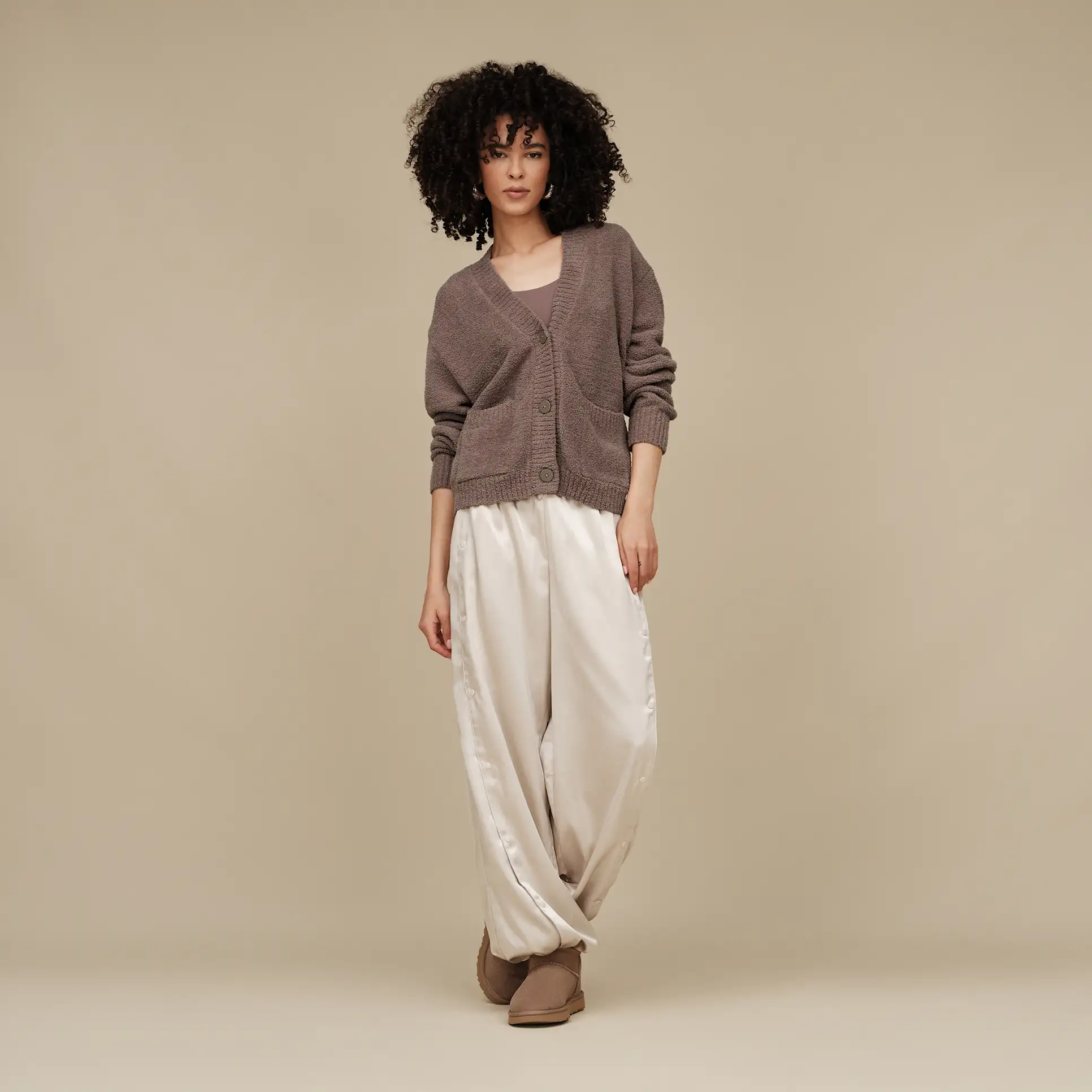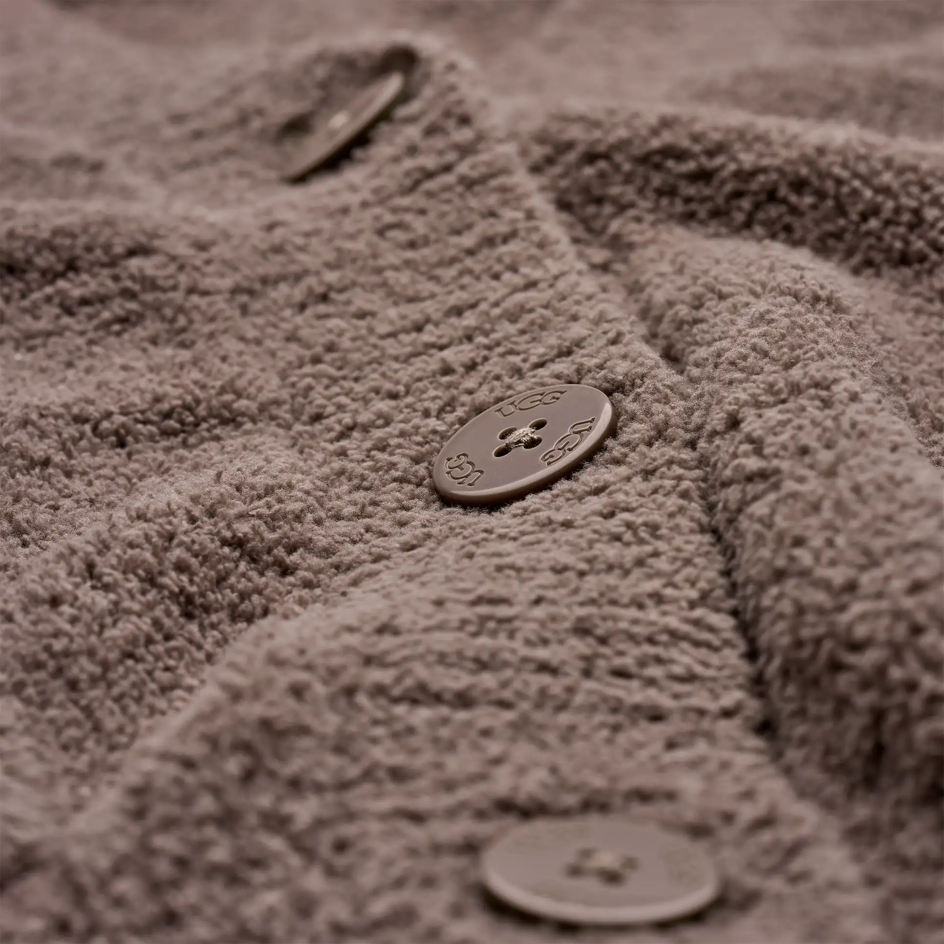- Rib knit front placket, hem, sleeve cuffs, and pocket opening