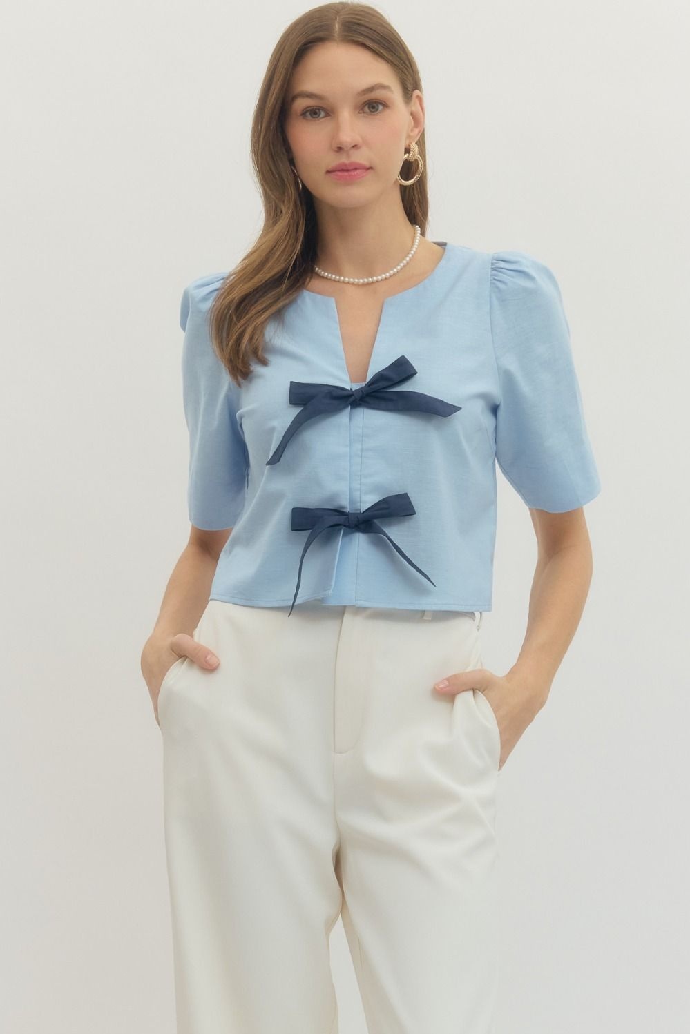 entroBow Front Blouse -(0) $38.00 Excl. tax In stock (2) Make a choice"Color: Blue","Size: S""Color: Blue","Size: M""Color: Blue","Size: L"Color: *BlueSize: *SMLAvailable in store:Check availabilityAdd to cartLogin for wishlistQuick OrderFree shipping From $200.00Share Facebook Pin it WhatsappAdd to comparison list