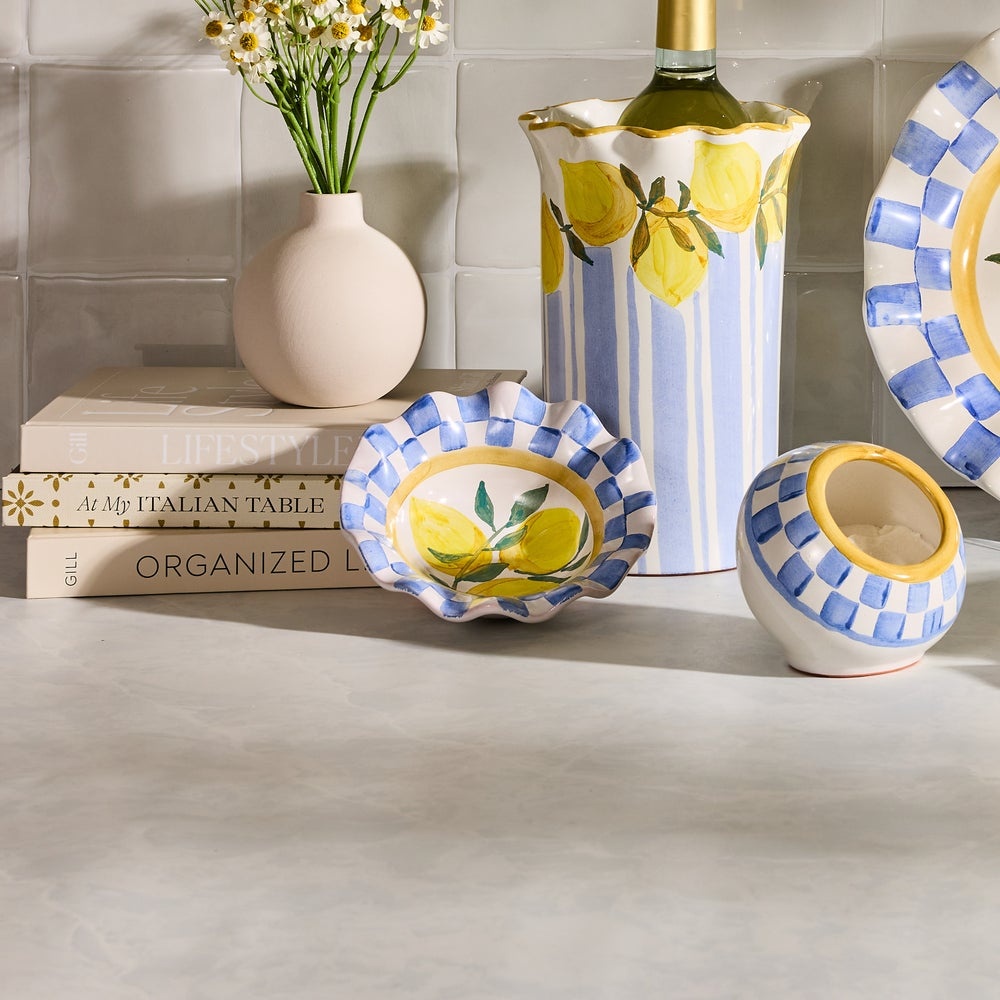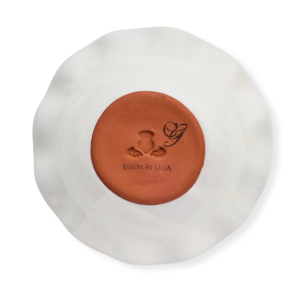 Handmade, hand-painted ceramic. Handmade in Aurora. Pieces may vary due to the handmade nature of each product.
