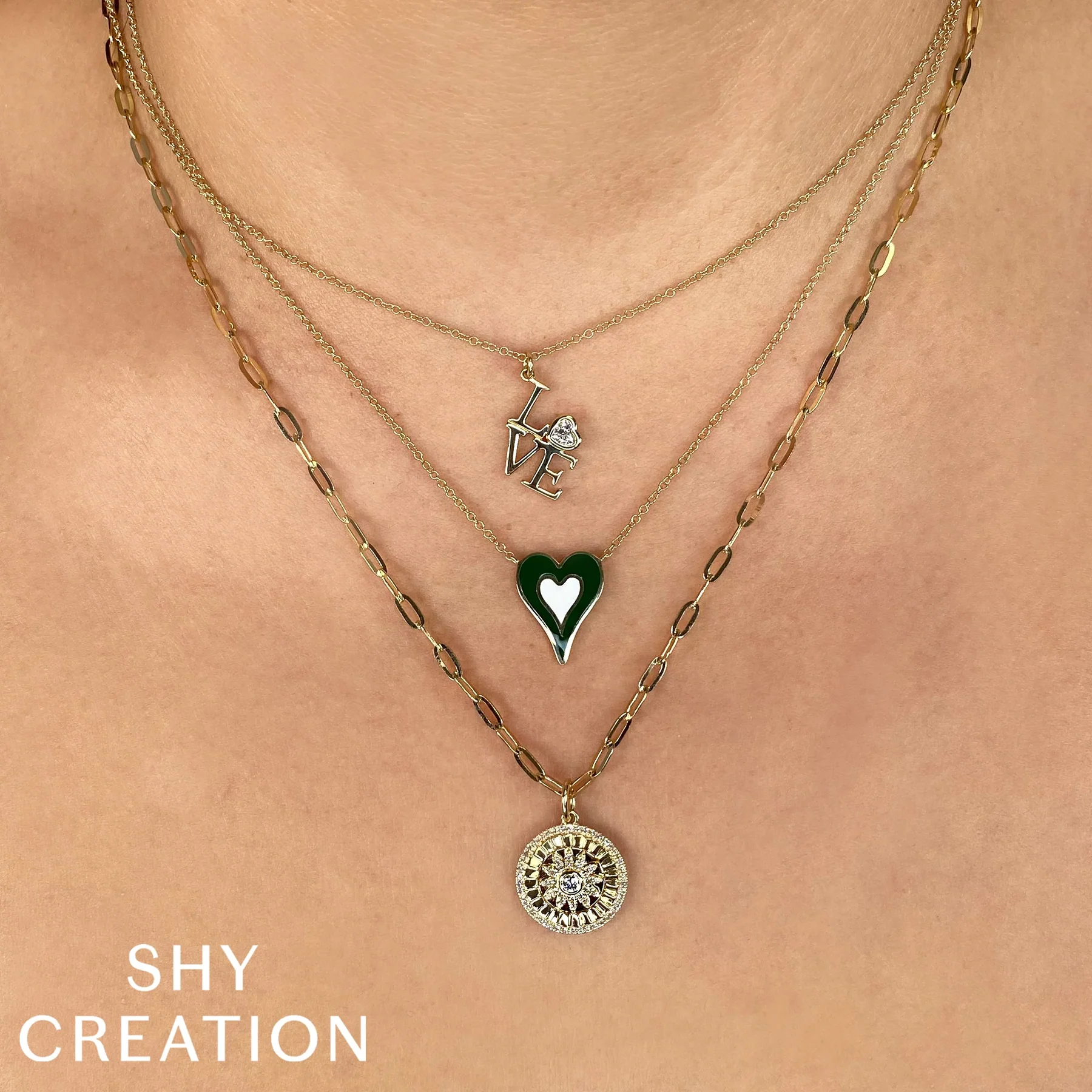 14K Yellow Gold/Diamond Heart Bezel LOVE Necklace