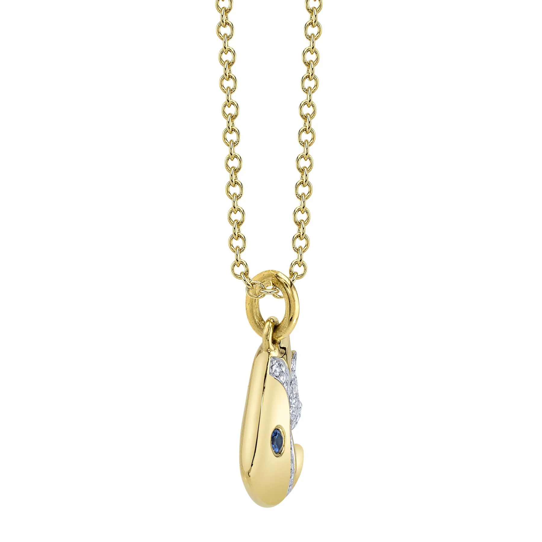 14K YG/Diamond/Sapphire Fish Necklace (.05ct/.02ct)
