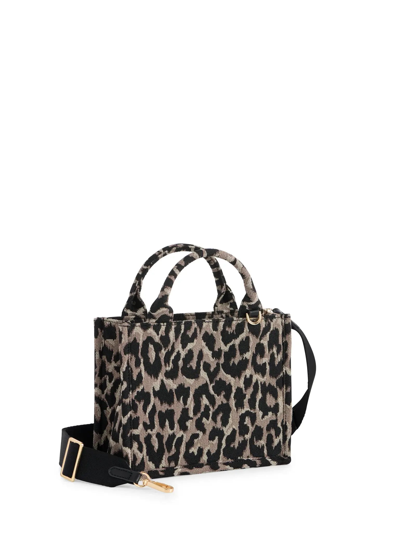 A magnetic snap closure keeps your essentials secure, while an inner zip pocket and slip pocket help keep things tidy on the go. The bold leopard print makes it a standout statement piece for everyday adventures or weekend fun.