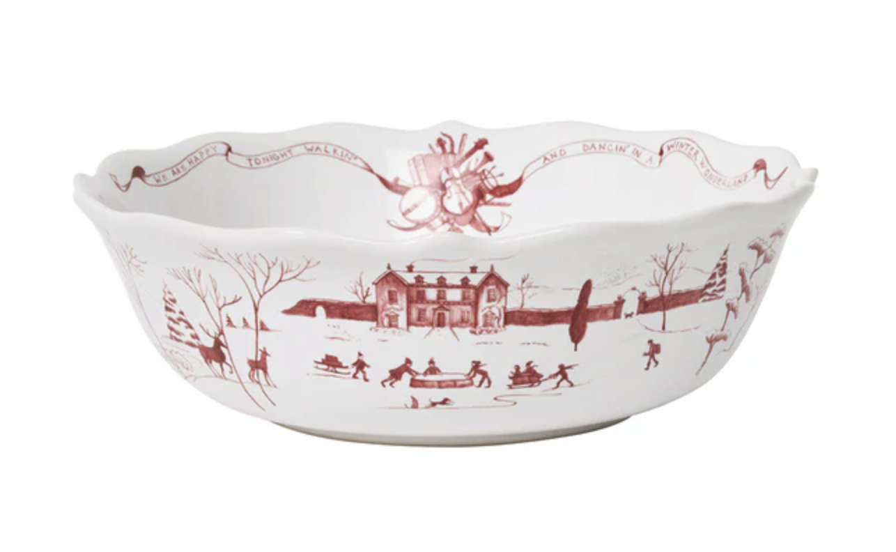 Country Estate Winter Frolic 11" Serving Bowl - Ruby