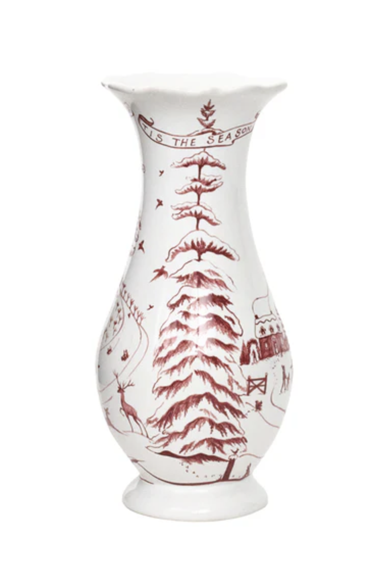 With idyllic snow-filled scenes in our bright ruby red, this tulip-shaped vase is wonderful wherever you place it (we have a penchant for roses and holly on the piano) and makes a perfectly lovely present. Gift boxed.