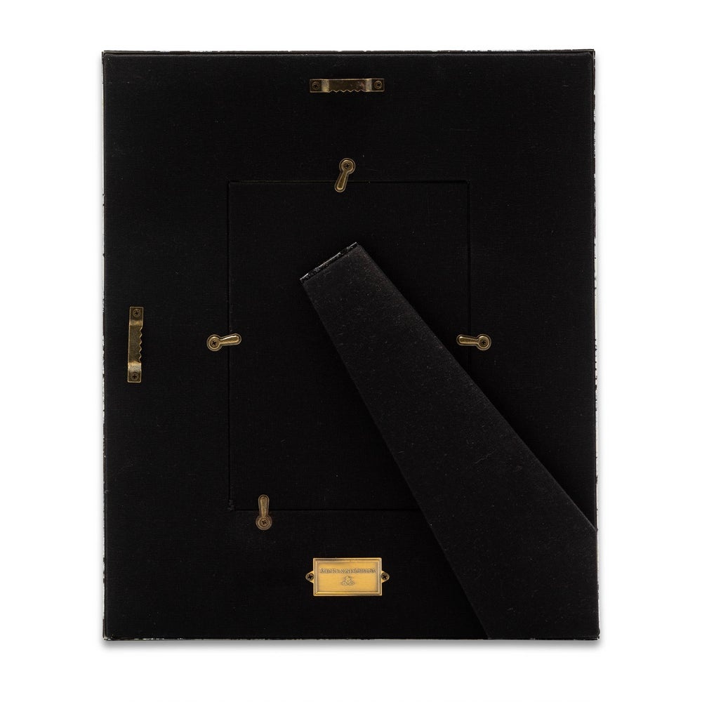 - Heavy-gauge, hand-glazed steel underbody with hand-painted Emerald Checks. Glass pane. Easel back included; backing is covered with linen and a brass logo plate. Pieces may vary due to the handmade nature of each product. Imported.