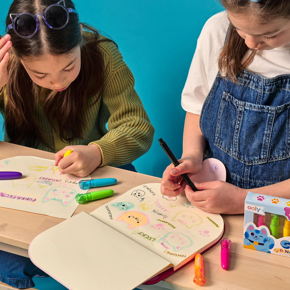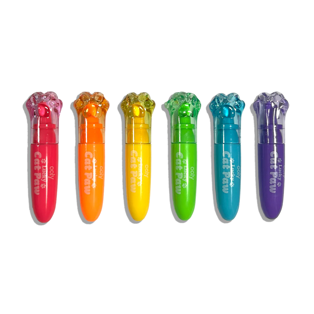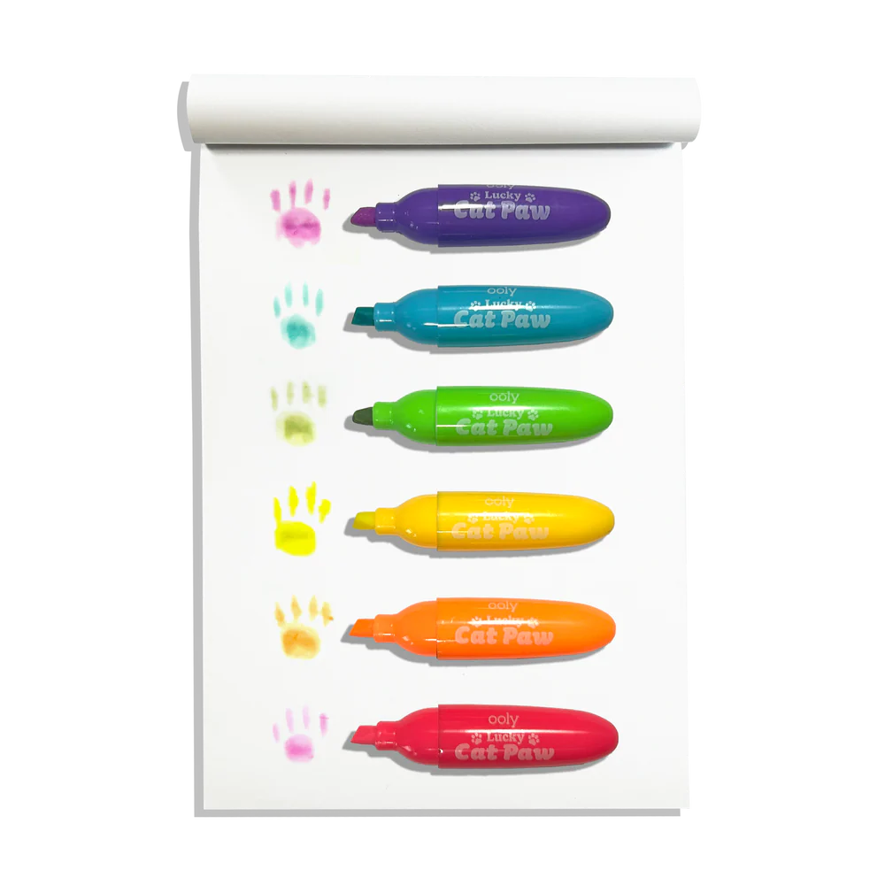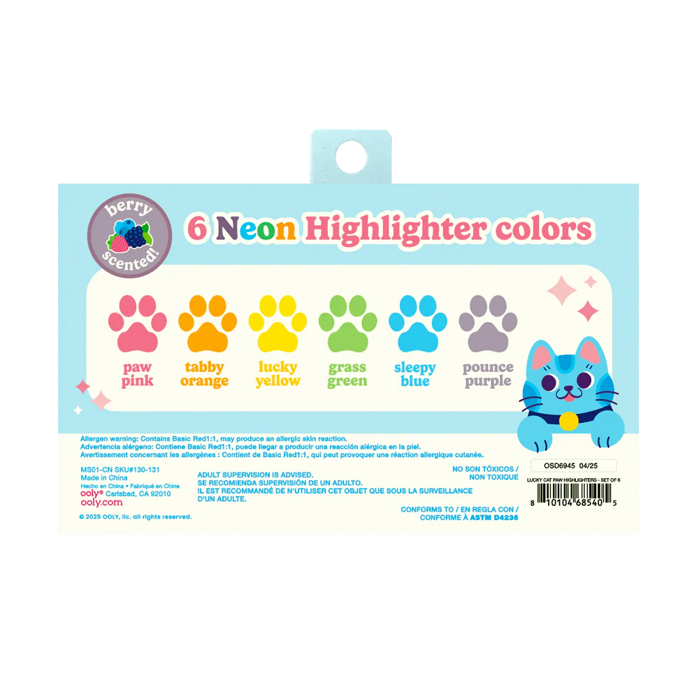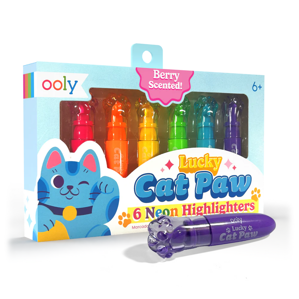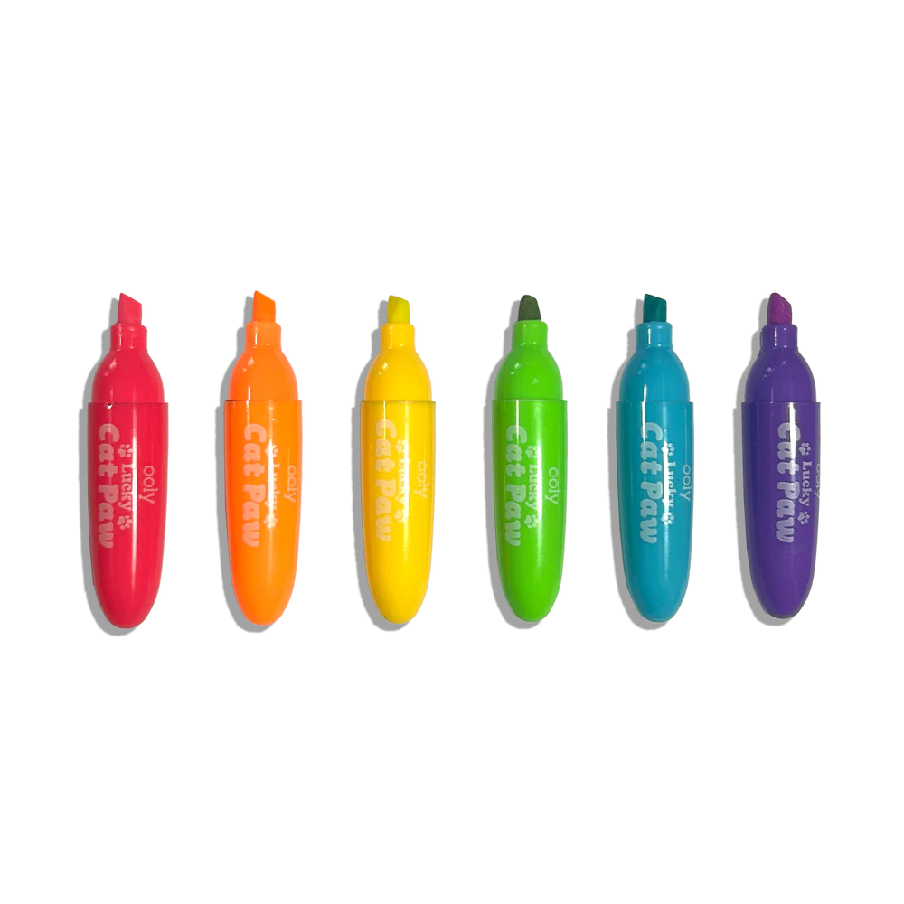 - A set of 6 scented mini highlighters in fun cat paw shapes