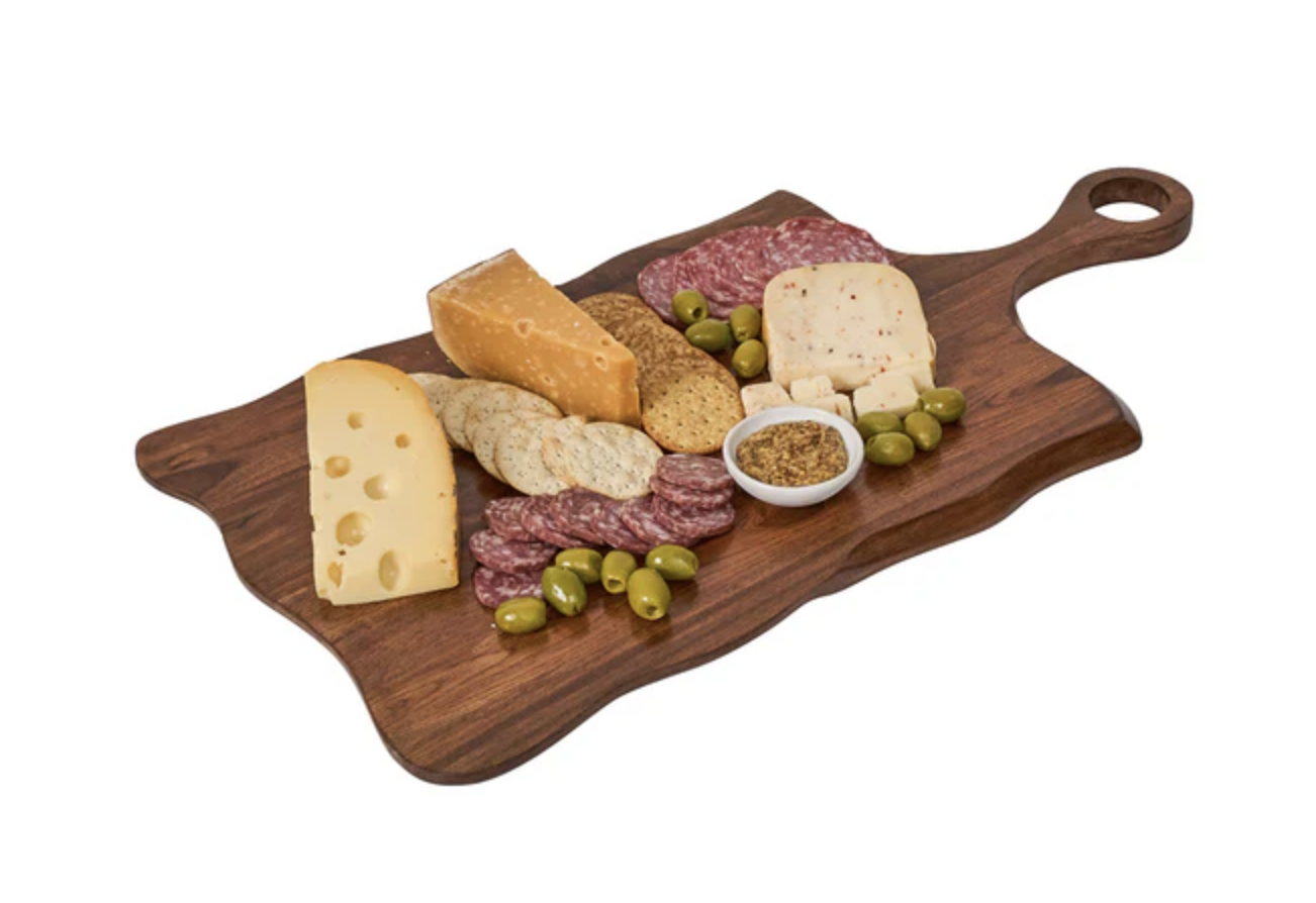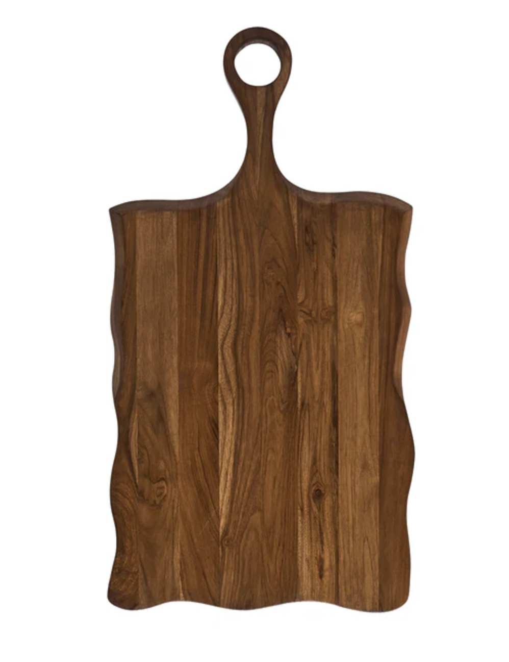 Made of hand-carved teak wood, these rustic, sculptural, and elegant pieces could have just as easily been found in a country chateau as a seaside cottage. Perfect for parties, fuss-free dinners and serving a crowd.
