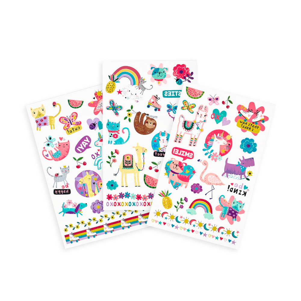 Product descriptionFun animal themed temporary tattoos3 tattoo sheets - over 50 temporary tattoosEasy to applyLasts up to 5 daysAdult supervision advisedSuitable for ages 3 and upNon-toxic