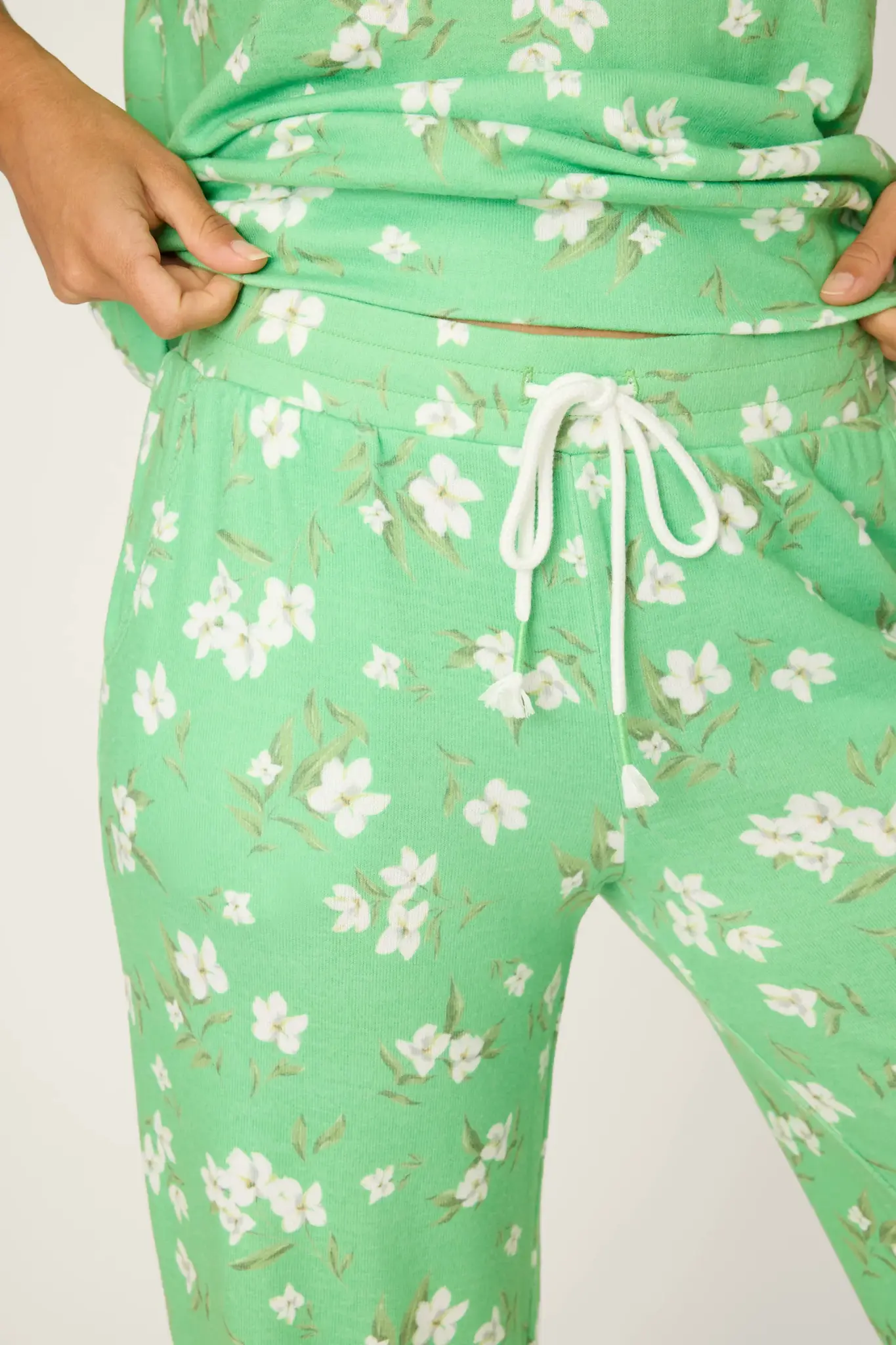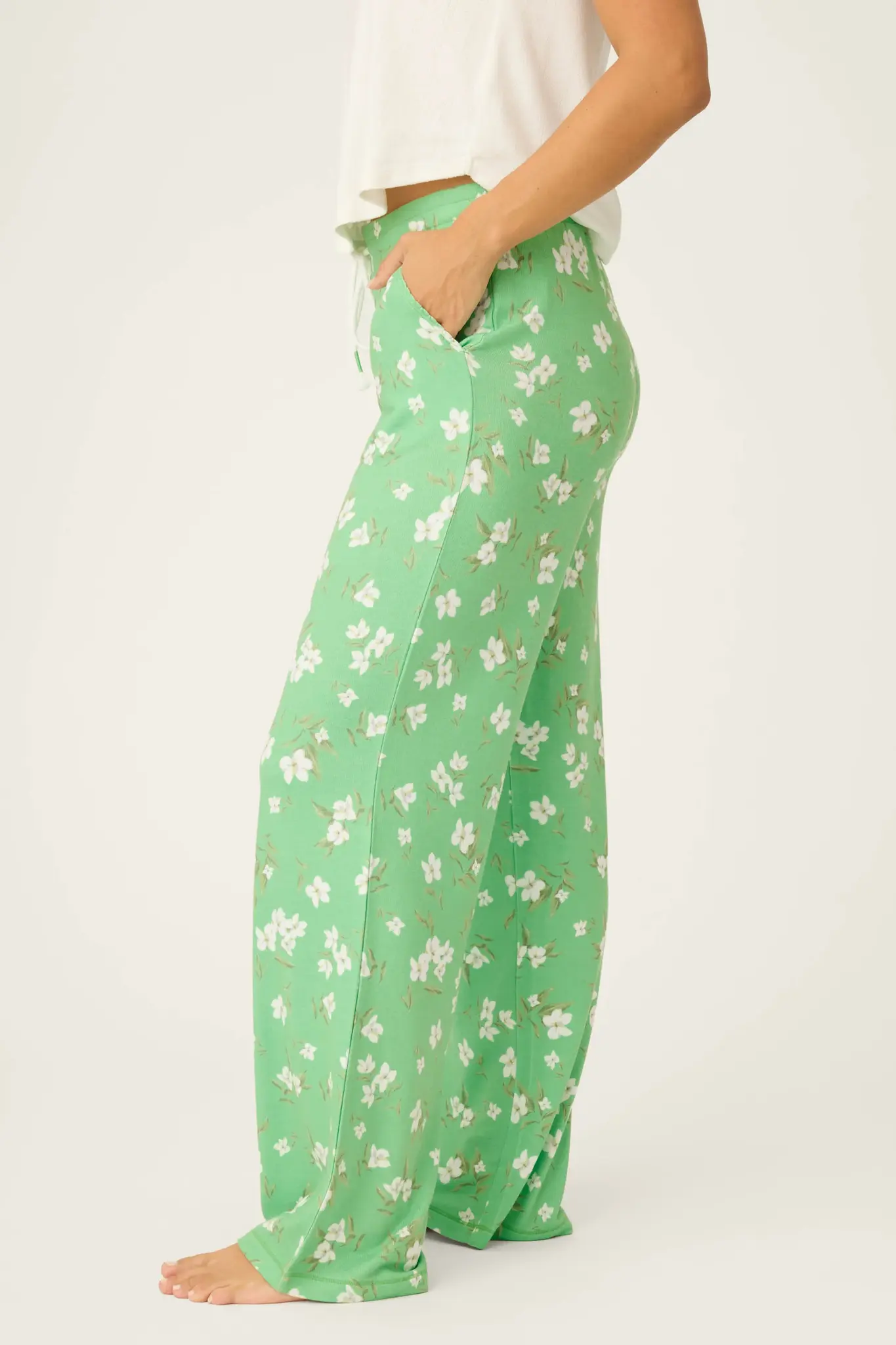 PJ SalvageGreen Apple Pant -(0) $75.00 Excl. tax In stock (1) Make a choiceSize : SSize : MSize: *SMAvailable in store:Check availabilityAdd to cartLogin for wishlistQuick OrderFree shipping From $200.00DescriptionShareLightweight and lounge‑ready, these floral peach jersey pants feature an easy straight‑leg cut and smooth drape. Side‑seam pockets add practical ease, while the elastic waist is finished with a rope‑style drawcord and tasseled ends. Facebook Pin it WhatsappAdd to comparison list