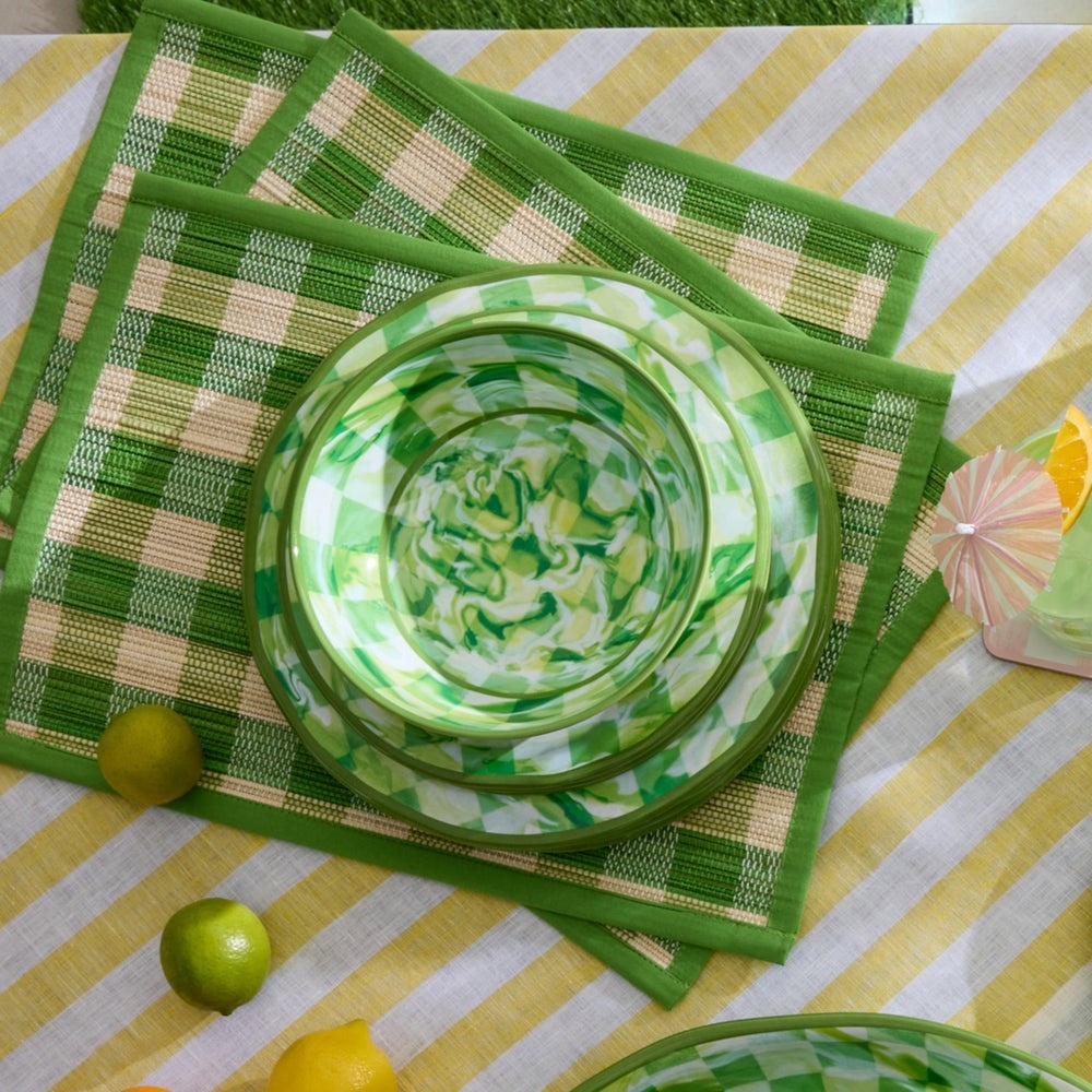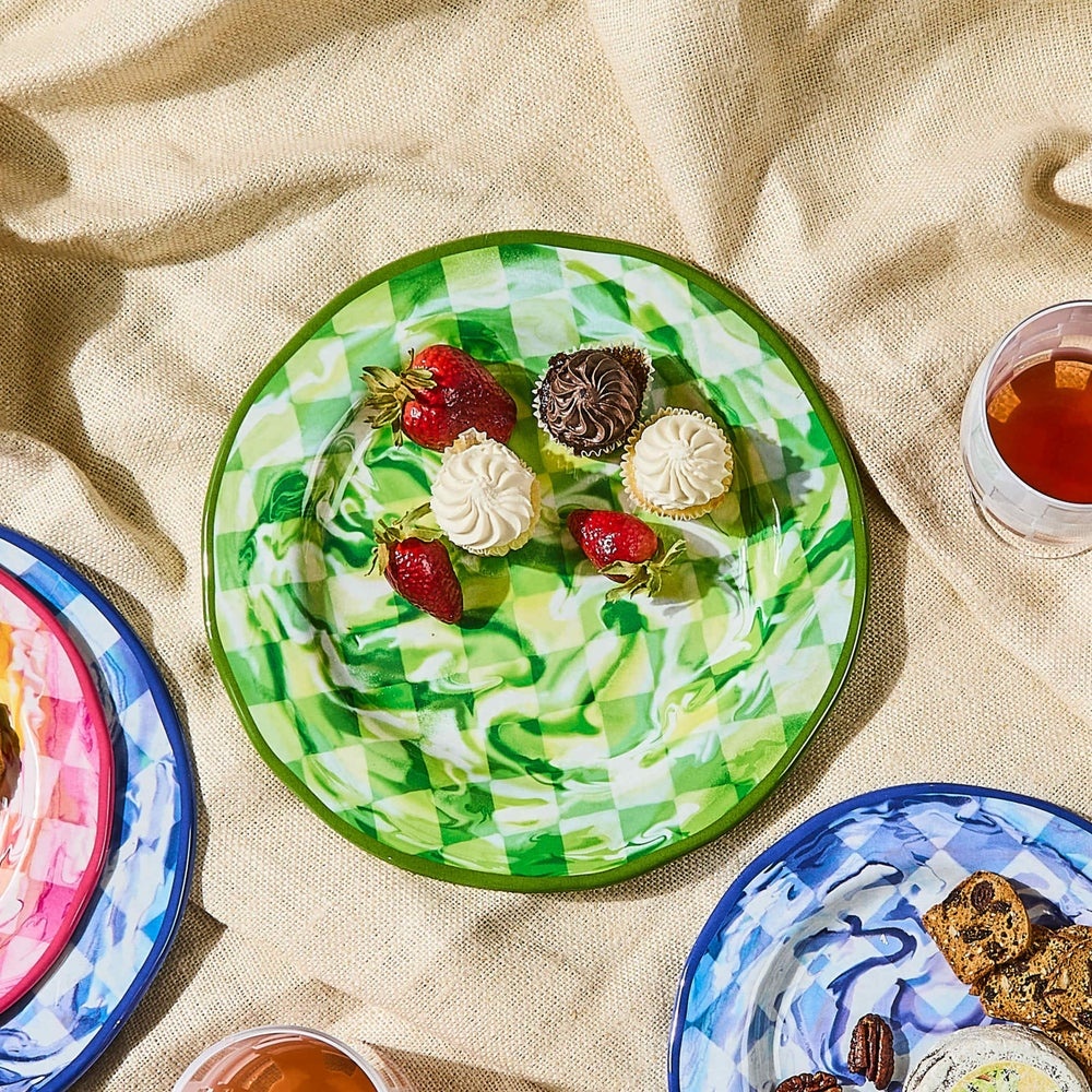 Green Marble Check Melamine Dinner Plates, Set of 4