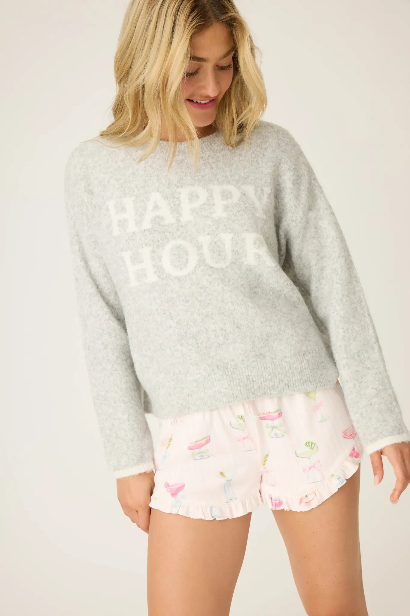 PJ SalvageHappy Hour Sweater -(0) $105.00 Excl. tax In stock (1) Make a choiceSize : SSize : MSize: *SMAvailable in store:Check availabilityAdd to cartLogin for wishlistQuick OrderFree shipping From $200.00DescriptionShareCheers to cozy time. This soft heather-gray crew is crafted from our fuzzy snuggle knit and features a boucle “Happy Hour” graphic that’s as spirited as your go-to cocktail. Facebook Pin it WhatsappAdd to comparison list