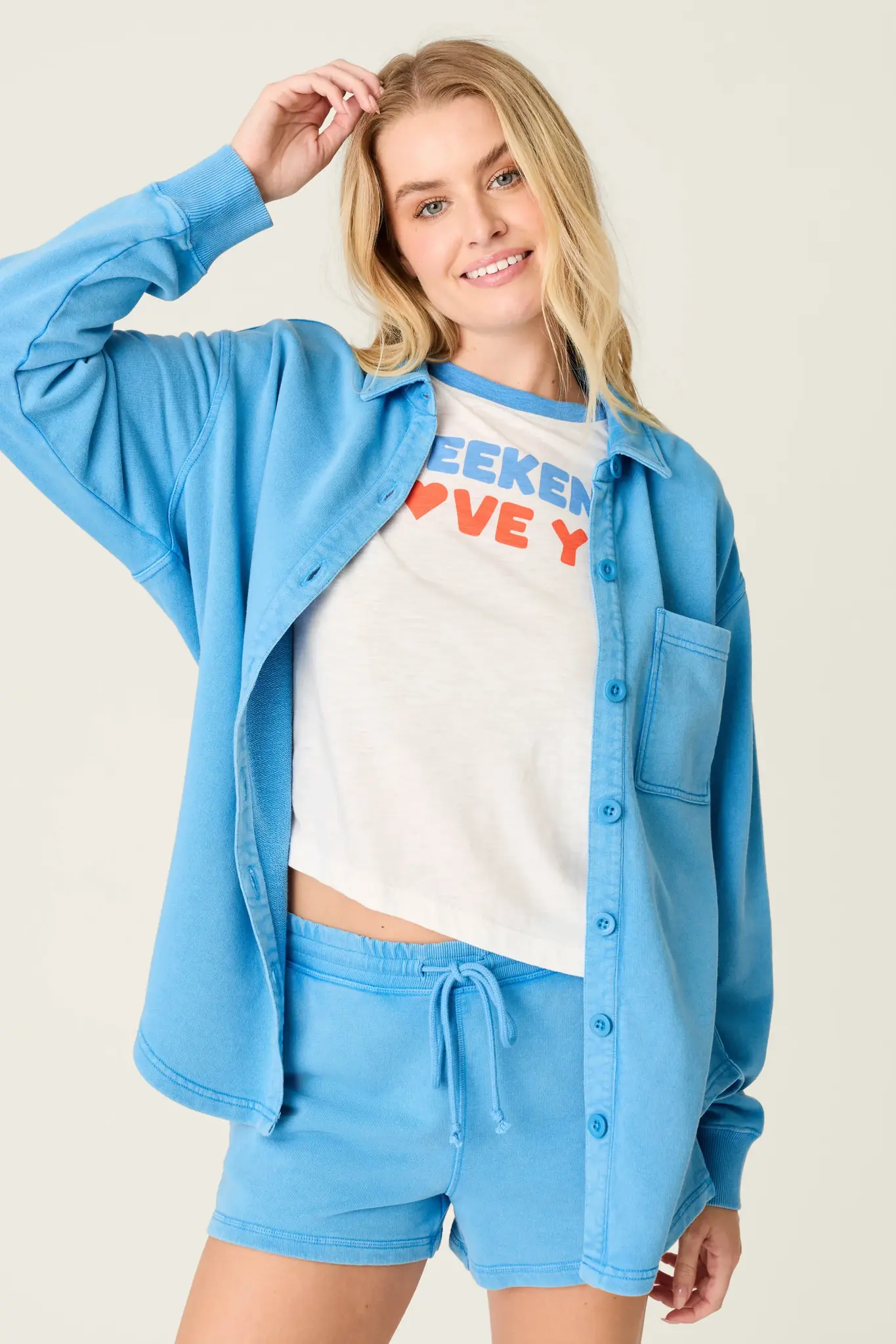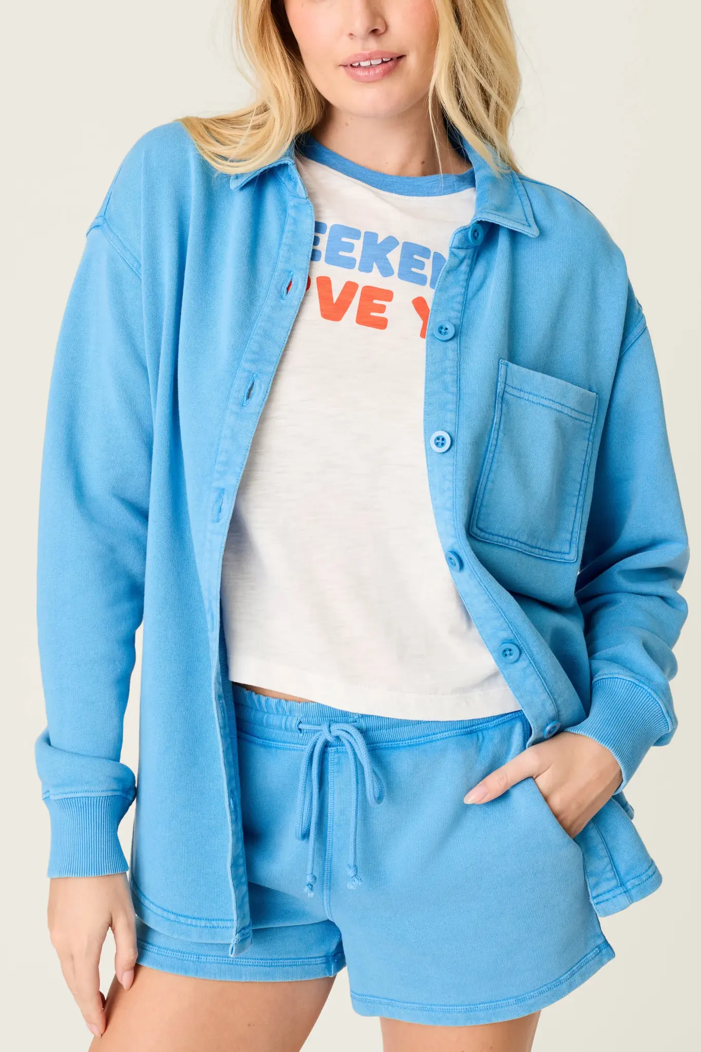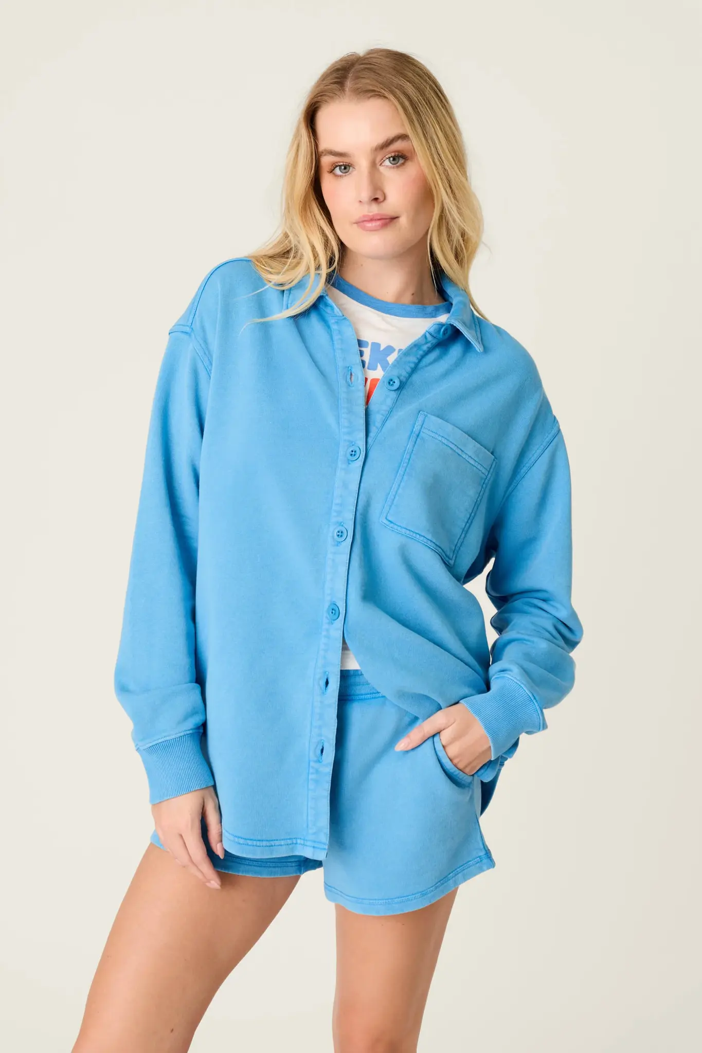 PJ SalvageJacket Washed Away- Marine Blue(0) $128.00 Excl. tax In stock (1) Make a choiceSize : XSSize : SSize : MSize : LSize : XLSize: *XSSMLXLAvailable in store:Check availabilityAdd to cartLogin for wishlistQuick OrderFree shipping From $200.00DescriptionShareClassic, casual, and perfectly worn, this soft French terry shirt jacket features a relaxed, easy silhouette with a notch collar and button-front closure. Unfussy and fun in punchy sky blue, it layers effortlessly with a throwback, warm-weather sensibilit Facebook Pin it WhatsappAdd to comparison list