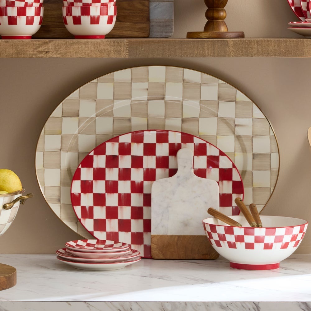 Mocha Check Large Oval Platter