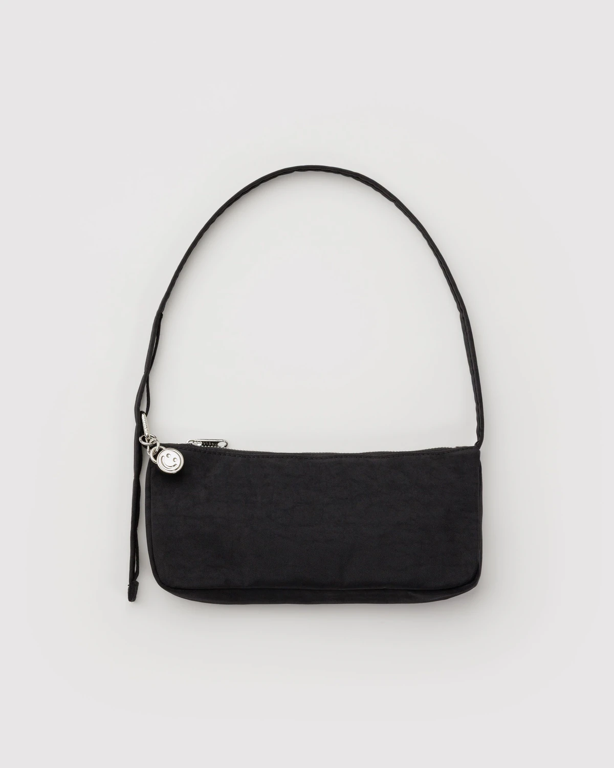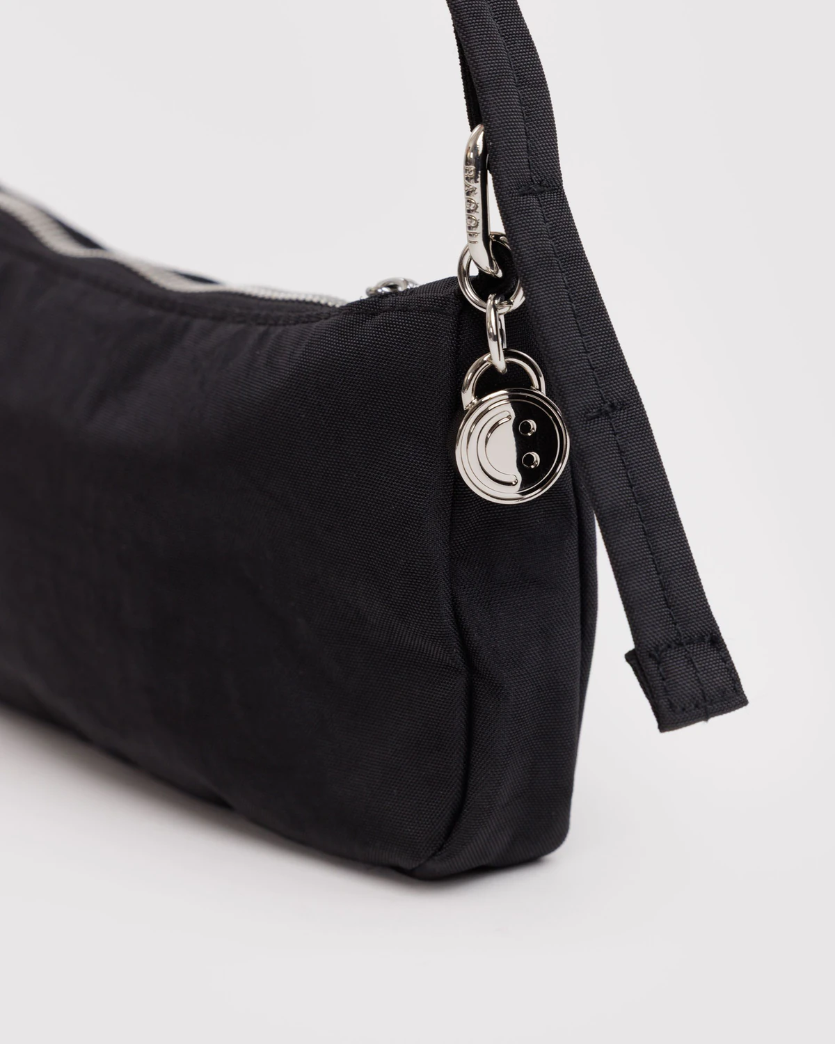 ● All metal hardware including charm clip and detachable smiley face charm.