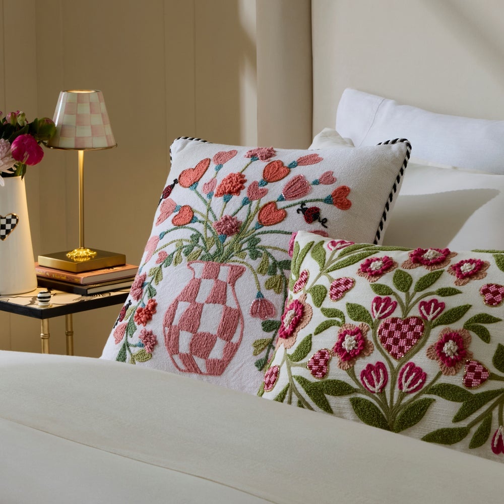 Cotton exclusive of ornamentation. Pieces may vary due to the handmade nature of each product. Imported.