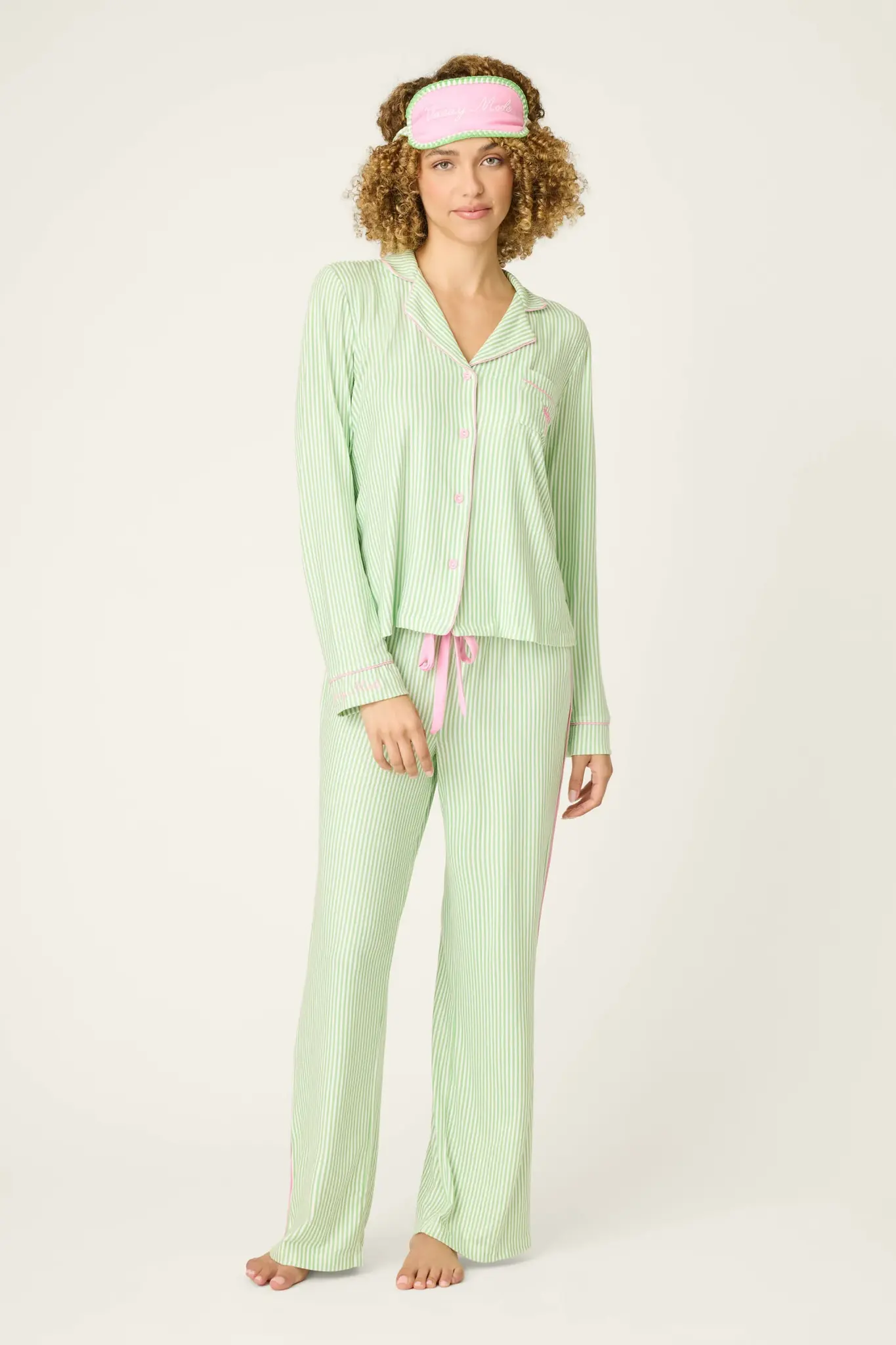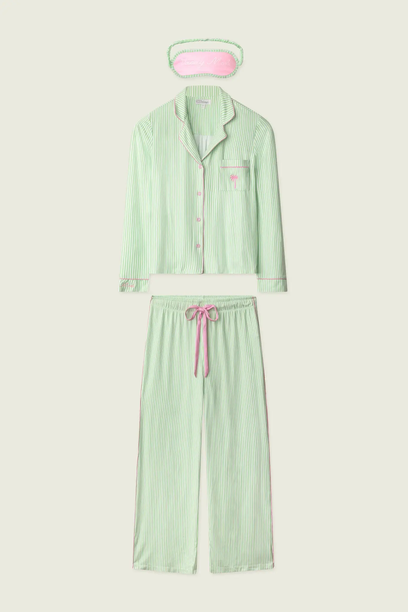 PJ SalvagePj Set Pupcation Palm(0) $128.00 Excl. tax In stock (1) Make a choiceSize : SSize : MSize : LSize: *SMLAvailable in store:Check availabilityAdd to cartLogin for wishlistQuick OrderFree shipping From $200.00DescriptionShareThis green‑and‑white striped three‑piece pajama set is fresh and feel‑good, finished with cheerful embroidered details that add a subtle wink of charm. Facebook Pin it WhatsappAdd to comparison list