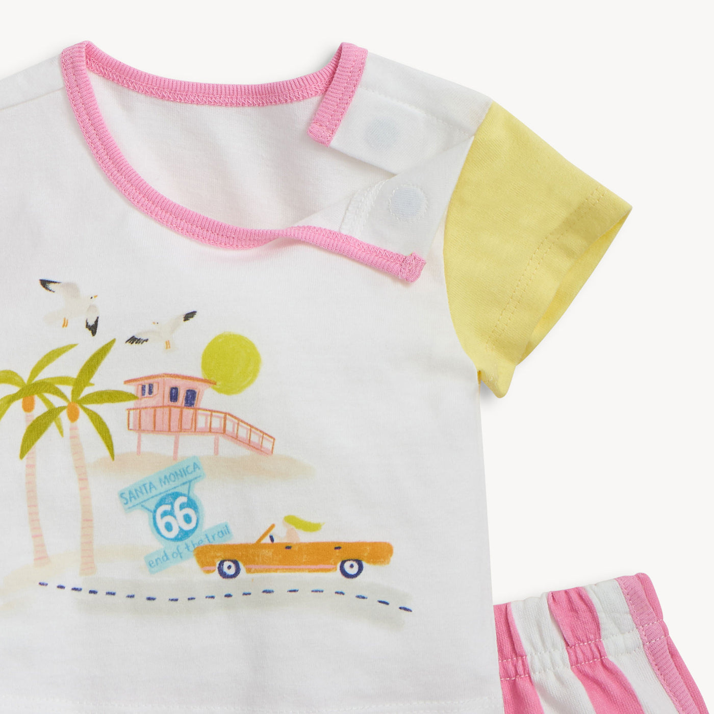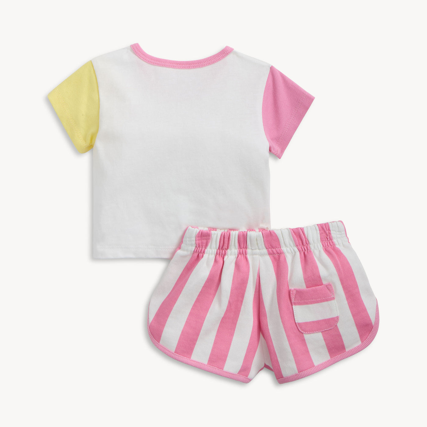 - T-shirt: 100% cotton jersey; Shorts: 100% cotton French terry