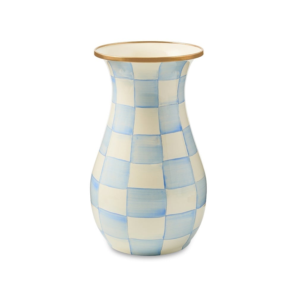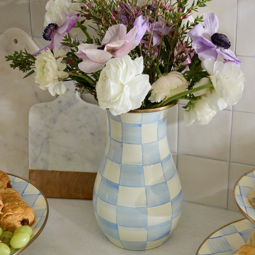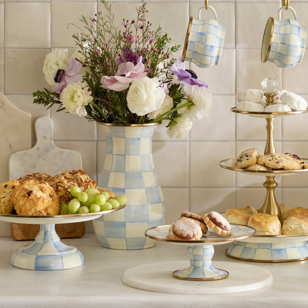 Hand-glazed steel underbody with hand-painted Sky Blue Check decoration. Pieces may vary due to the handmade nature of each product. Imported.