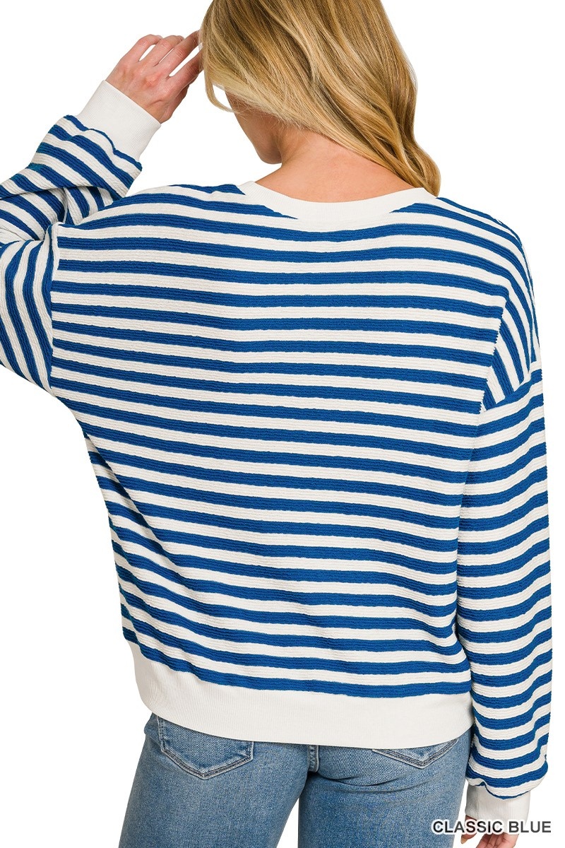 ZenanaStriped Pullover -(0) $34.00 Excl. tax In stock (2) Make a choice"Color: Black","Size: S""Color: Black","Size: M""Color: Black","Size: L""Color: Candy Pink","Size: S""Color: Candy Pink","Size: M""Color: Candy Pink","Size: L""Color: Classic Blue","Size: S""Color: Classic Blue","Size: M""Color: Classic Blue","Size: L""Color: Green","Size: S""Color: Green","Size: M""Color: Green","Size: L""Color: Ruby","Size: S""Color: Ruby","Size: M""Color: Ruby","Size: L"Color: *BlackCandy PinkClassic BlueGreenRubySize: *SMLAvailable in store:Check availabilityAdd to cartLogin for wishlistQuick OrderFree shipping From $200.00DescriptionShareThis striped leisure top is lightweight enough for all day wear. Facebook Pin it WhatsappAdd to comparison list