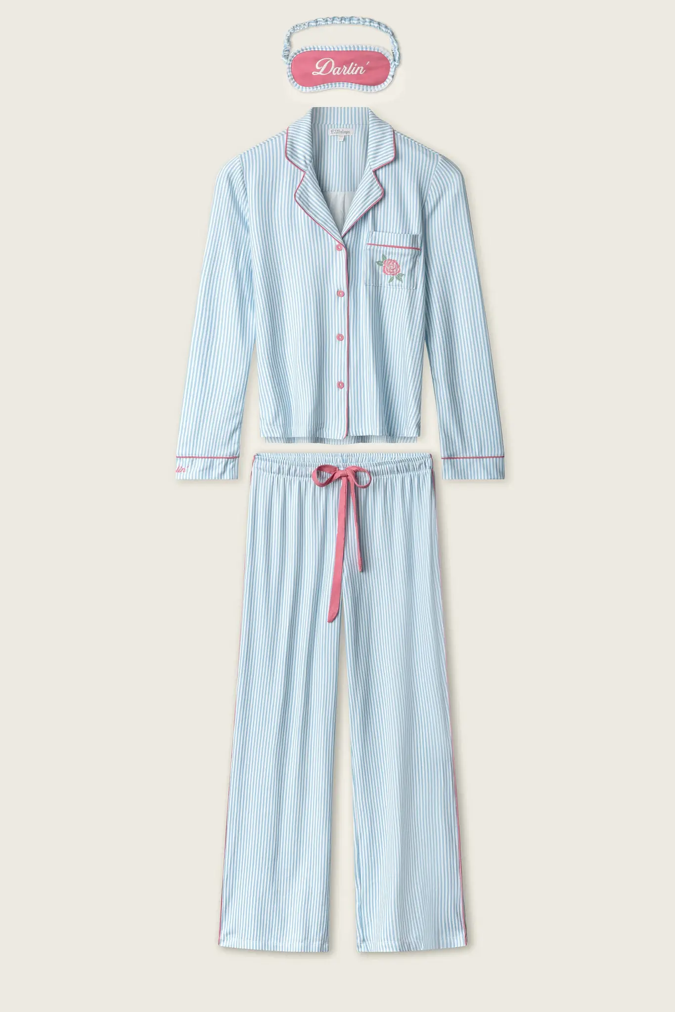 PJ SalvageWestern Blooms PJ Set -(0) $128.00 Excl. tax In stock (1) Make a choiceSize : SSize : MSize : LSize: *SMLAvailable in store:Check availabilityAdd to cartLogin for wishlistQuick OrderFree shipping From $200.00DescriptionShareSaddle up for sweet dreams. This three-piece pajama lounge set blends classic blue stripes with charming floral embroidery, finished with playful “darling” embroidery on the cuff and matching sleep mask. Facebook Pin it WhatsappAdd to comparison list
