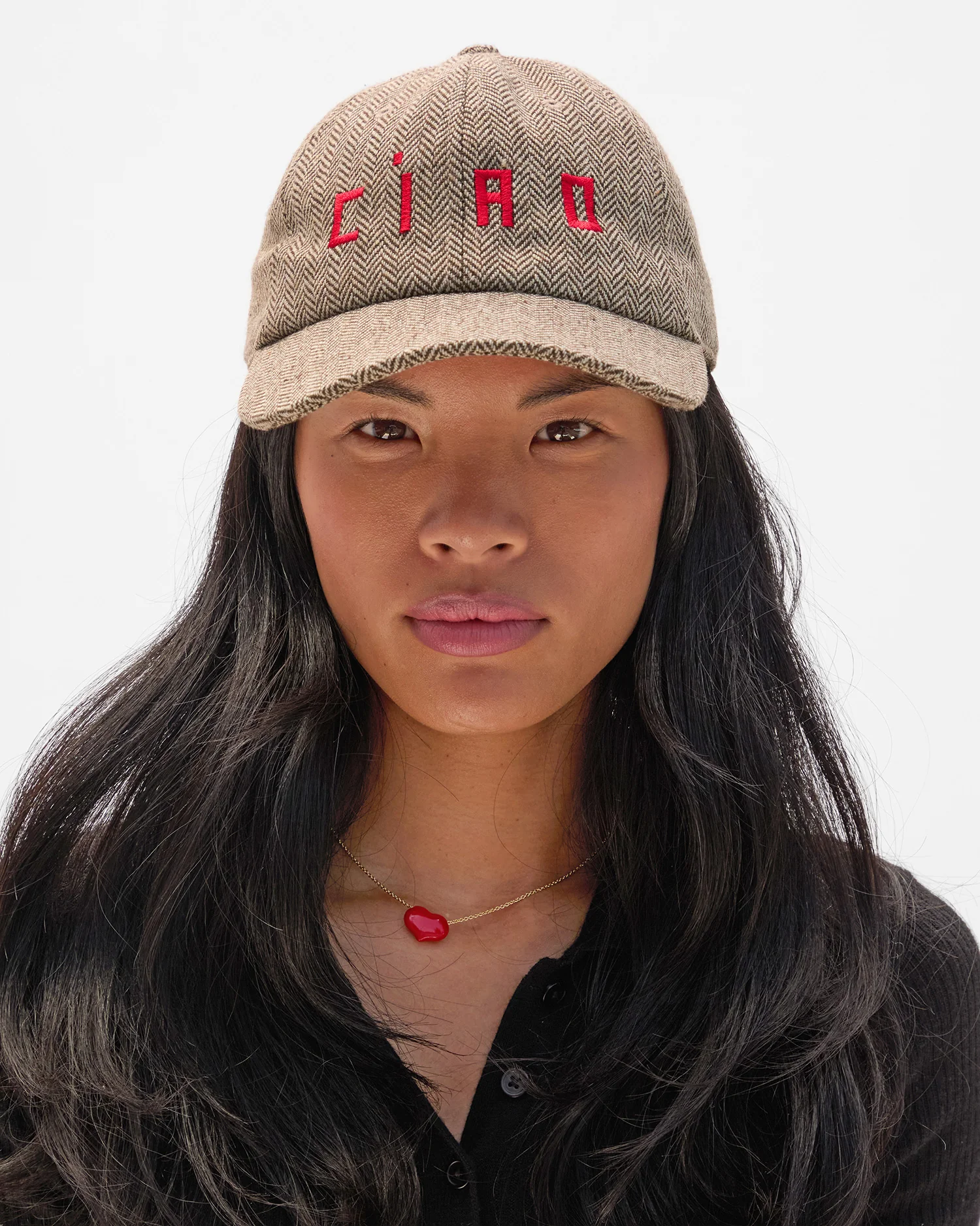 Wool Baseball Cap - Embroidered Ciao - Taupe
